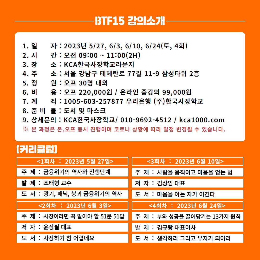 - [트인북스] BTF15~16회차 온라인 강의(5월~8월)