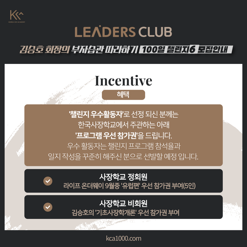 김승호회장의 '벙개 보충수업' 초대권 부여
