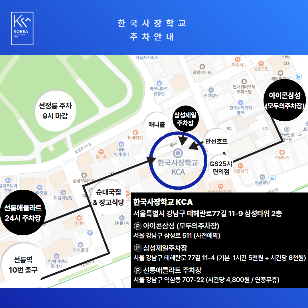 · 주 소 : 서울강남 테헤란로 77길 11-9 삼성타워 2층