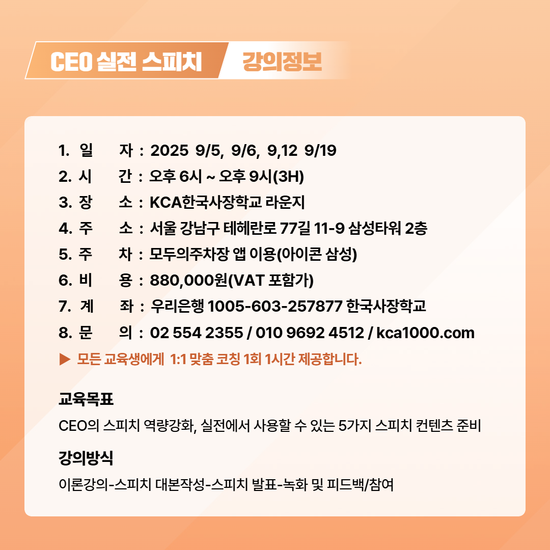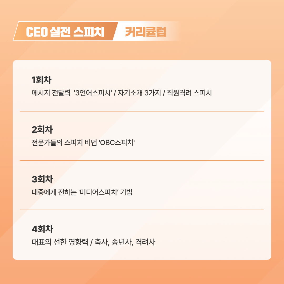 ✅ CEO 맞춤형 스피치 교육 : CEO에게 꼭 필요한 스피치 원리와 구조 학습
