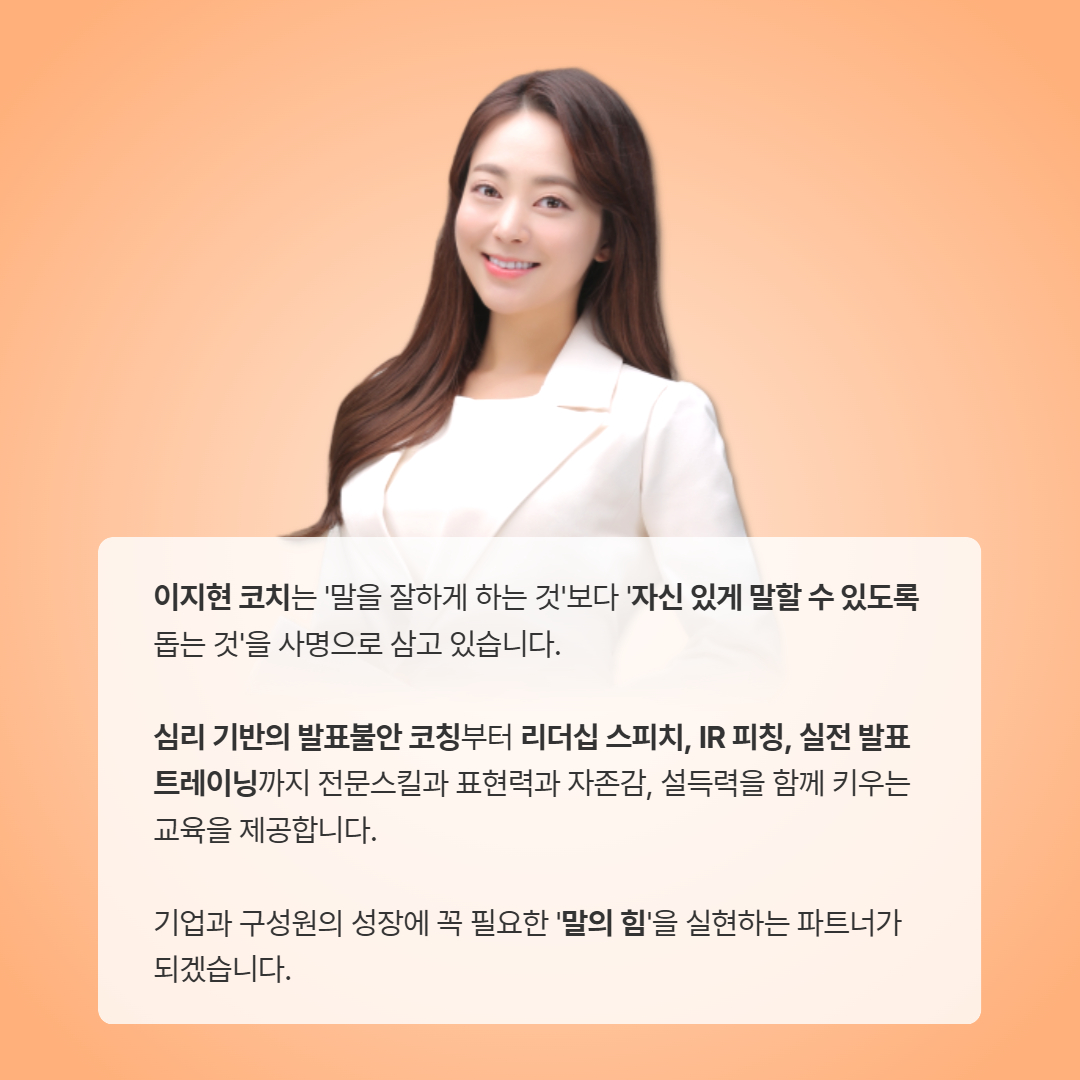 이지현 코치의 심리 기반 스피치 코칭 프로그램은 단순 화법 훈련이 아닙니다.