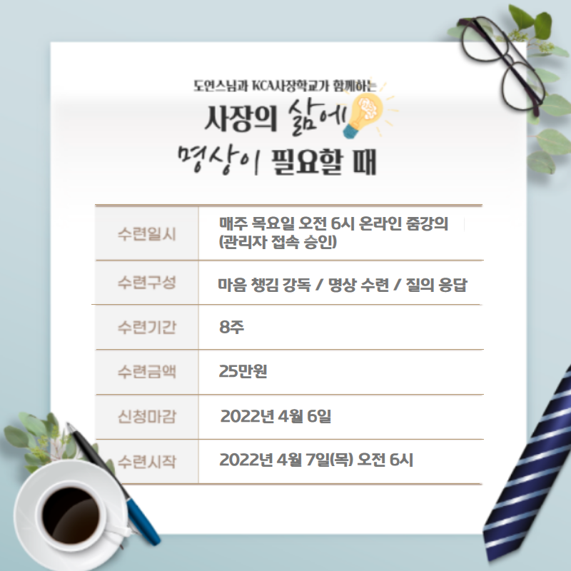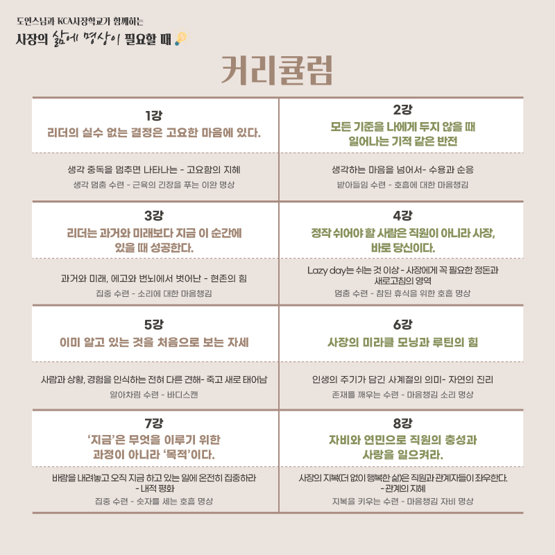 - 강 좌 : 조직을 성장시키는 '리더의 명상'