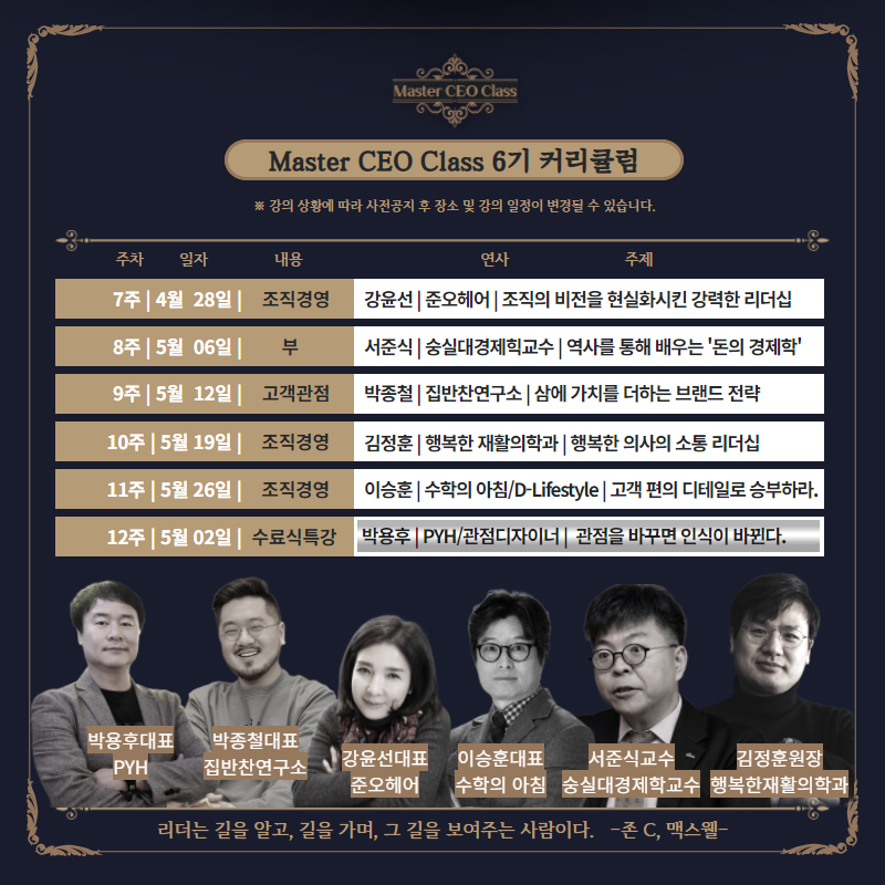 각 분야 Master 12인의 경험과 노하우를 듣고 배우는 사장학교 Premium Class