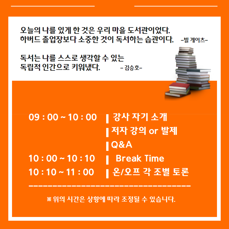 - 시간 : 오후 6시30분~ 8시30분(Q&A 포함)