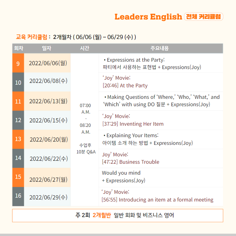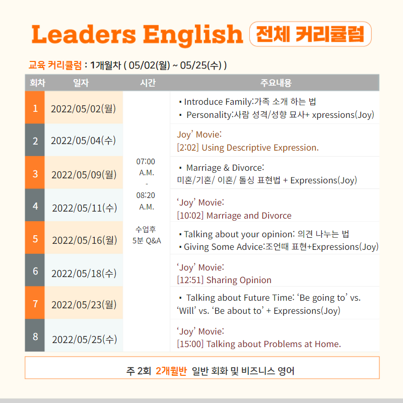 - 강 좌 : 'Leaders English 2' 온라인 강좌