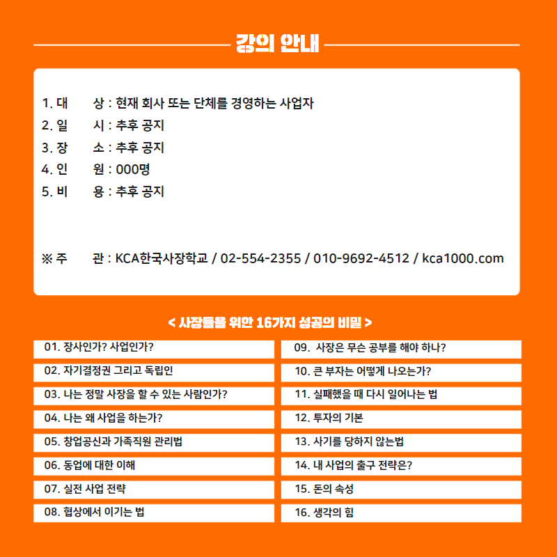 KCA한국사장학교 | T. 02 554 2355 M. 010 9692 4512