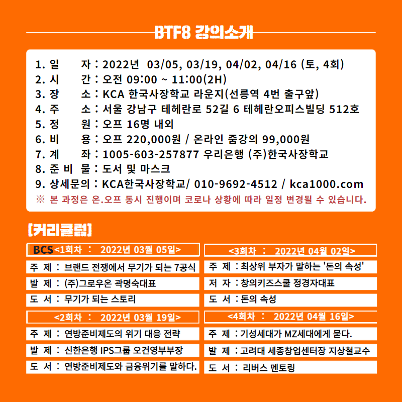 - 비 용 : 오프 220,000원 /온라인 99,000원 (VAT포함)