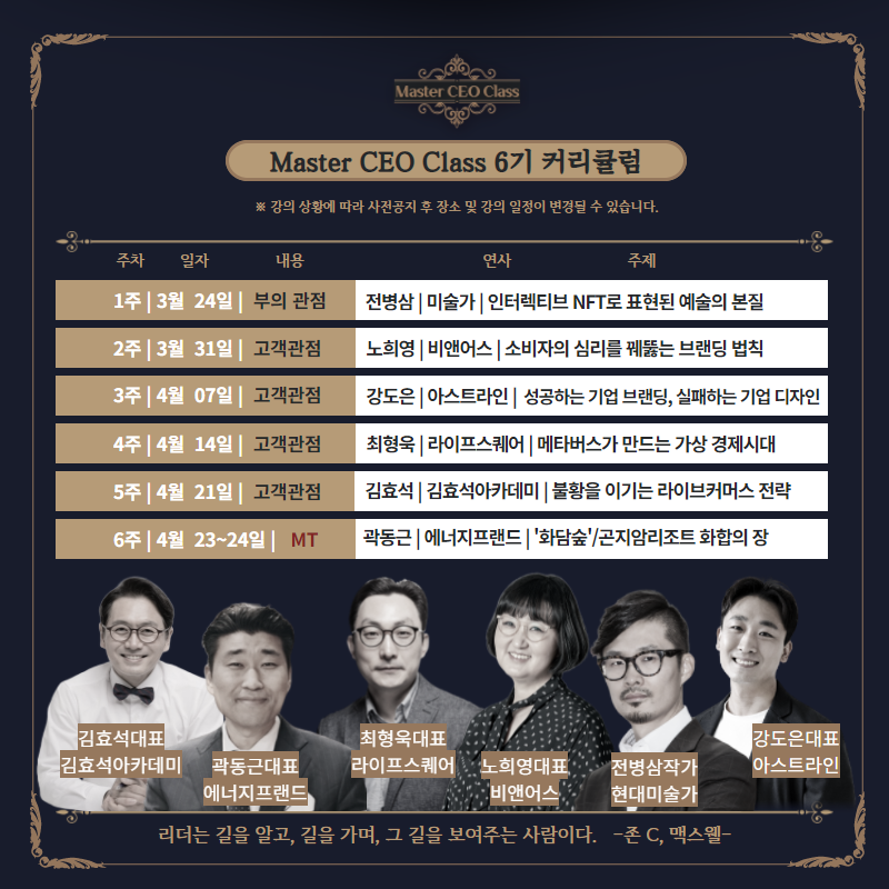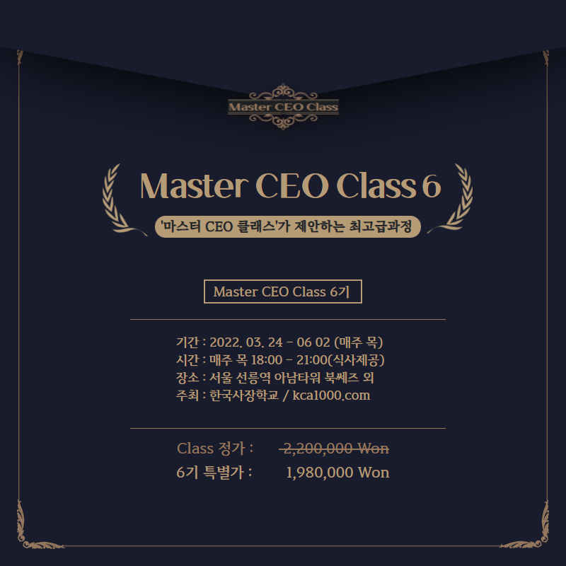 - 대상 : 중앙대 GFMP, 사장학개론, MCC, MBA 수료회원